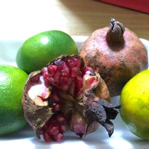 バイヤーの今週のイチオシ*ザクロ(石榴、柘榴、若榴) このザクロはヒメザクロという矮性のもので、普通のザクロより小さい実がとても可愛いです!