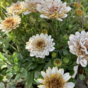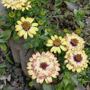 このお花の色はしぶいですね…お迎えしました オステオスペルマム リコッタ💛🤍💚 花弁の表と裏のコントラストが美しい 昨日は一日じゅう雨でした 今朝はおひさま🔅🔆見れて気持ちも晴れ晴れしい…