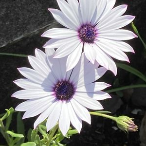 オステオスペルマム 3D 白いのと藤色の。 白いのは大株で 花付き良いけど 真ん中しべが定まらない感じ😆 本来は左上のような感じです。 藤色のは一度消えかかったけど 何とか挿芽で命繋がった感じよ🤩