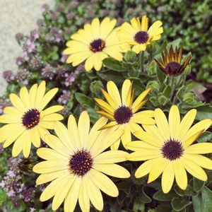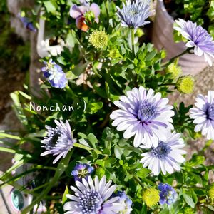 オステオスペルマム二種類咲きました 暖かくなって、パンジーの色がとても春っぽいやわらかい色になりました💗 花も大きくなって風にヒラヒラ揺れています🍀