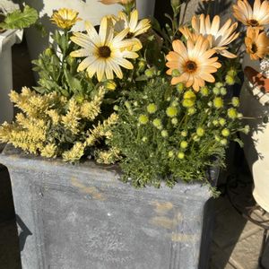 お迎えした苗 鉢植えした オステオスペルマム ラナンキュラスは 2株1つの鉢植え 雨は上がったけど また寒くなる予報 沢山咲くと良いなぁ💞