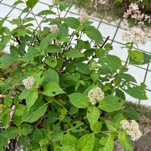 6月に ピンク アナベルの花が 終わってから 短く 剪定したら 又 蕾をつけ始めました✌️🤗💖 yuyuさんの 🏷 金曜日の蕾たち に 参加します👍🎶🙏 6月と違って 今 咲くのは 小ぢんまりしてるんですよね😆
