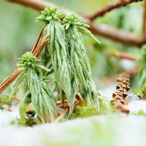 雪の中から ひよっこり、顔をだしていたコケ。 ハイゴケかな!?たぶん。🙄