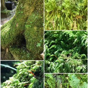 達沢不動滝までの小径🌿 苔こけコケ苔こけコケ苔✳️… その4 石灯篭のてっぺんの苔の森🌳✳️ 右上のpicのズームが周りの苔です💚 苔色々〰️