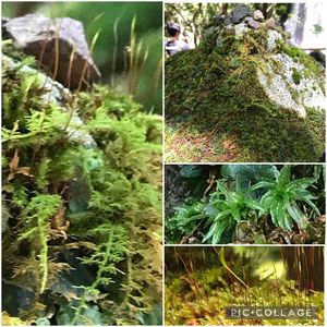 達沢不動滝までの小径🌿 苔こけコケ苔こけコケ苔✳️… その3 木の根元の苔たち✳️ 左上の木の根元の苔(周りの4枚) 木の根元に苔の森が隠れてた❕🌳 名前も何種類の苔があるのかも分からないけど😆まぁそんなことはどうでもよく神秘的💚