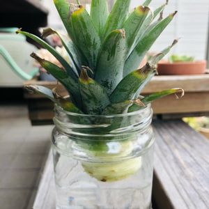 パイナップル君🍍は変化なし、乙女心・水栽培と瓶を変えたので記録として😑。