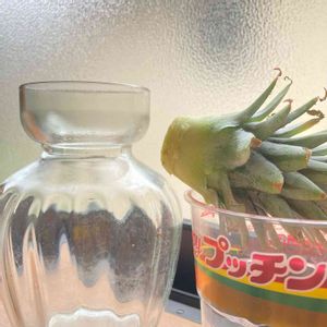 🍍番外編🍍 妹が台湾パイナップルを持ってきてくれて初めて食べましたがとても柔らかくて美味しかった~😋それを見た母が「それは水栽培ができるんじゃあないん?」っていう一言で姪っ子たちがばあちゃんの生きる楽しみになれば‼️と育てることにしたようです笑腐らせないでね笑