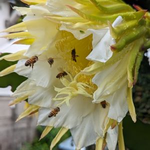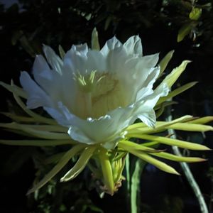 ドラゴンフルーツの花が 闇夜に 妖艶な姿で、美しく さいている。 香りがなんとも言えぬ いい♡✨ ボルドー・ルージュの様なフルーツの色ボリフェノールたっぷり 食べ過ぎ ないようにしま〜す。