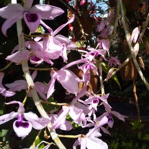黒檀(庭木)に着生して 咲いているサクラらん。