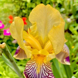 庭にあやめ⁉️ 一本だけ咲いたあやめ❓ うっそ〜、あやめ❓ 菖蒲やカキツバタでもないみたい💦 なんで❓ ここは南半球‼️冬に突入って時になんで❓大丈夫かなぁ❓ ミニバラ🌹に夢中で、蕾に気付かなかった💦