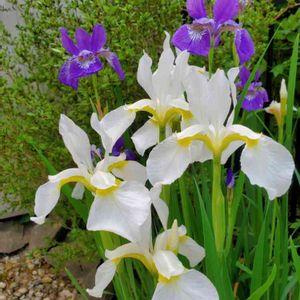 紫蘭 あやめ 白 紫 おはようございます☀️✨ 風のある 肌寒い朝です 紫蘭とあやめの競演 紫蘭は葉っぱの縁に白い線が 入るのが 我が家の特長 今日も一日 愛を感じられますように🎵