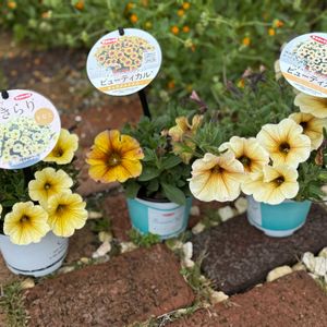 ペチュニア×カリブラコア サカタのタネのビューティカルと 春きらりをお迎えしました☺️ 去年ビューティカルのモニターに選んでいただいて、育てやすくてとても丈夫だったので、今年見つけたら絶対に買おうと決めていました! モニターの苗は地植えで放ったらかしにしていて、ピンクだけは枯れてしまいましたが他はまだ生きているので開花するのが楽しみです♡ モニター苗にはなかったフレンチバニラ、キャラメルイエローと、その横にあった春きらりも気になってお迎えしました🫶