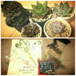 仕事頑張ってる御褒美に Riccaでの即売会 福山市のコルムテラス に行って来ました🚗 素敵な生産者さん店主さんに いろいろ教えてもらい プリプリの多肉ちゃんを お迎えいたしました(*´罒`*)ニシシ♡ そしてワイヤーピックもめっちゃ可愛くて 一撃でヤラレタ❗ すっかり作家さんのファンになっちゃいました🎵 4周年記念に頂いた綿の種も 蒔くのが楽しみで仕方ありません(๑>∪<๑)
