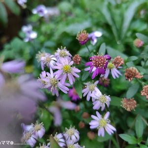 先に咲いた野紺菊夕映と 野紺菊 どちらもそろそろ終わりのようです…… 一緒に咲いてると 違いが良くわかりますね… 野紺菊は、山野草コーナで。 夕映は、園芸種 どちらも 地下茎で増えるので、 増え過ぎ要注意 ③奥手には パンダスミレ❁💜が顔を出してます。かわちい〜☺️😘 こちらは、ランナーを出して広がります。