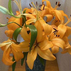 今日のお花 スカシユリ 週末に庭仕事をしていると、散歩で通る方がよく声をかけてくれます。少し前のこと、世間話をしていて「奥さん花が好きだから、今度ユリを持ってくるよ。」なんて言って帰ったと思ったら、今度は自転車で本当にユリをたくさん届けてくれました🚲💐 奥様がユリの生産農家でパートでお仕事していらして、ユリはもう飽きるほどあるのだそうです。 お花に親しんでいるといいことあるな🥰と大きな幸せを感じた日でした👩🌾✨🌸 もう2週間も経っているユリですが、今日のお花のご縁でupします❤️