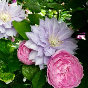 バラがほんの少しですが、咲き出したので クレマチスとコラボしてみました🥰