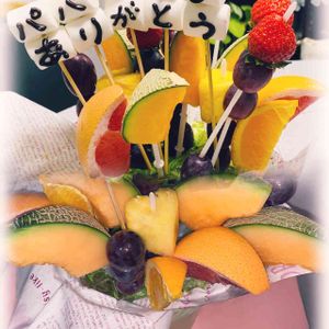 ❤️父の日❤️ ピンポーン🖕 何❓誰❓って… パパさんが玄関先に… 娘からのお届け物でクール📦💕 💐フルーツのブーケが届きました💐 パパさん大喜び👨💕✨✨ モクモクと食べてます❤️✨ 嬉しそう❣️❣️❣️