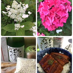 アジサイ屋敷のあと アラレちゃん家に寄ってから帰宅 父の日 息子達から届きました 夏、乗り切れます ムカゴの焼酎 麦とろセット ウナギ