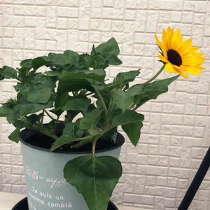 父の日に、息子が選んだひまわりと鉢に植え替え完了〜。 まだお父さんには内緒なんだって!