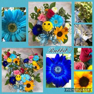こんばんわ〰🌠 今日は父の日😊❣️ はるちゃんから、スマイルのお顔を教えてもらって作った◡̈⃝⋆*父の日アレンジ…♬*.◦❣️ とーっても楽しく仕事出来たょ゚・*:.。❁ はるちゃん…ありがとう❤