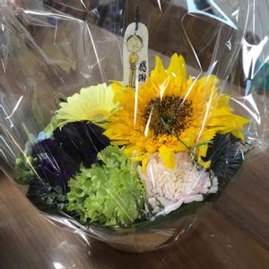ひまわり【ホワイトナイト】を使った父の日用の花束。 秦野市の花屋フローリストせきど
