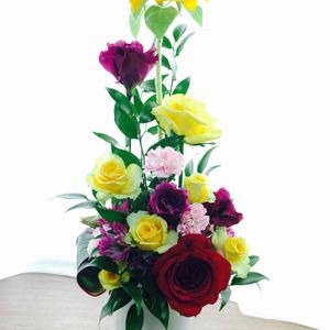 父の日のアレンジメント作ってみました。 定番のひまわりとバラをメインに近くの花屋に売ってる花材で作りました! 花の美しさのおかげでなんとか形になっておりますw 最大の問題は父親に気に入ってもらえるかどうか!なるべく大人っぽく仕上げたつもりですが、どうなるでしょうw 皆さんも母の日だけではなく是非父の日にもプレゼントを!!