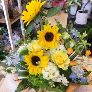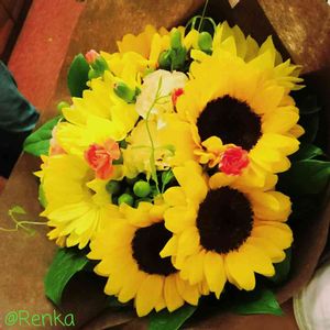 父の日にご注文頂いたヒマワリを使用したブーケです。 久々にカチッと納得いくブーケが出来たので嬉しくて写真撮ってしまいました(笑) 上手に出来ると嬉しいですね\(*ˊᗜˋ*)/