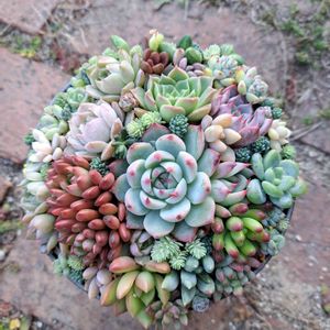 友達のところで寄せ植えしました♪ ぜぇ〜んぶ、友達のところの多肉さん❤︎ 私は、鉢を持参するだけ(笑) 机に置いてくれる多肉さんを片っ端から詰めこんで、カラフル寄せ植えの出来上がり〜( •⌄• ).*・゚