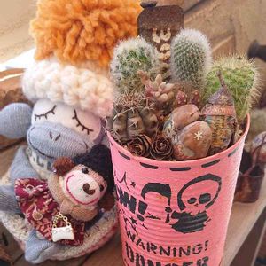 こんにちは*:.。.(*ˆ﹀ˆ*).。.:* 昨日、多肉さんを幾つか植えました❣️ トワさんからのリメ缶やプレ企画で当たったrskmamさんの🍓の鉢 インスタで購入した鉢や多肉💚など やっと…出来ました💓 サニコさんのハコフグちゃん、やっと碧魚連さん🐟を買って植えれました😉 まだヒレが付いてませんが😅 🏷おうち時間に何してる?ソクモン祭り に参加です😊 昨日の何?と思われた子うさぎさん🐰 帽子がソックスです🧦 ペットボトルのフタにかぶせて スカートはシュシュになってますよ😉💓