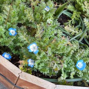 ネモフィラ♥寒暖差のお陰で、葉が傷んだり萎びたり、でも、花は何とか頑張ってくれています🎵