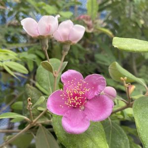 「フェイジョア」かと思ったのですが、少し違うよう。 近くの名札に「テンニンカ」とありました。 パチリ テンニンカの果実から抽出して得られるエキスに、紫外線による肌へのダメージを抑制する作用が見出されたとのことです。