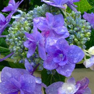 ひと雨もふた雨も降って、元気になったガクアジサイ。綺麗いです。