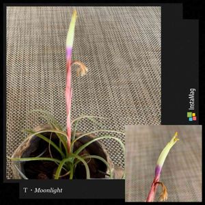 ダイソーエアプランツ ムーンライトかな?と思ってます。 じっくり花芽が成長して、ようやく咲きました✨ 水やりだけなのに何で育つんだろ😌 不注意で育ち始めた小かぶ取れちゃって…次の子供は望めないのかなぁ😣勿体なかった😭