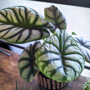 アロカシアのシルバードラゴン。シルバーがかった人気品種です。
