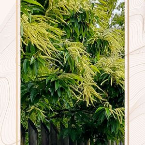 🤍栗の木と花🤍 少し離れた道の駅に🚗💨💨!圏外になるような山道通って…❣ ➘の🌳がアチコチにみつけました! 緑の風景に淡い生成色の花が山を優しくしてくれています!🖼 春はいいですね!🙆🤗❣️秋のイガグリが楽しみですよね! 栗の木がどこにはえているかが今だとよくわかります!🤭😋💦💦 花も雄蕊雌蕊があるようです! あのイガイガ頭のまあるい実がなることがとっても面白いですね!😁🤭🤣🤣🤣 あのイガイガ頭のできたてはモフモフふわふわで手で触るととっても気持ちいいらしいですよ!💻より 🏷白い恋人たち 🏷楽しもう2023♡ 🏷コラージュ仲間達 参加させてください! 2023.5.28.📸pic