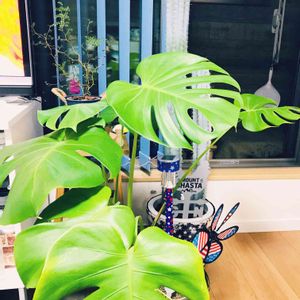 部屋に置いてたら狭くなっちゃうので、ベランダに出していたモンステラ❤︎ 台風避難の為室内へ😆 これおきに、そろそろ室内に置いてあげなきゃねぇ✨😊