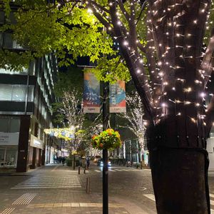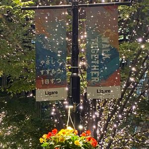 江東区木場駅近く 深川ギャザリア壁面寄せ植え ライトアップ