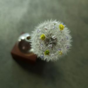 綿毛遊び たんぽぽとともに咲いている、 小さな小さな名も知らぬ雑草の 花達を綿毛にあしらってみた。 小さな地球のような 平和な世界。