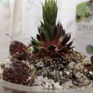 今日のセンペルかあさん(⌒‐⌒) 1枚目🤗 今日はおかあさんの体力を考えて萎んだ花💠を5つ切り取りました✂️💠💦✂️💠💦✂️💠💦✂️💠💦✂️💠💦 それでもまだ8輪💠咲いています☀️😵💦 💠💠💠💠💠💠💠💠 青だもんさんが、株の状態を気にしてくださったので今日は全身をアップ💃🤩💖 隣に居るのはセンペルかあさんのお子様です(*^-^)/\(*^-^*)/\(^-^*) 植え替え後眠ったままです(つд;*)