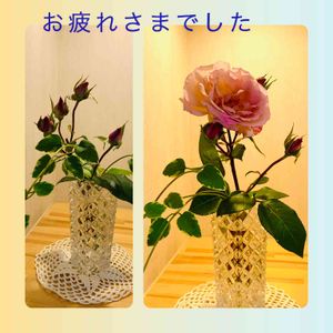 こんばんは🌠 会社の一角シリーズ 帰りに水を変え、まだ持ちそうな 蕾を残して帰宅しました🌹 薔薇さん また月曜会いましょう🙋🏻♀️ 今日もお疲れさまでした🍀