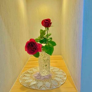 こんばんは✳️ 会社の一角シリーズ🥀🥀 良く咲いてくれる 薔薇を2輪生けました😊 帰りはライトアップしないと 暗くなりました💡✨ 先輩がレースの下敷を 新しくして下さりました🙆♀️ステキ♡ 今日も一日お疲れさまでした🍀