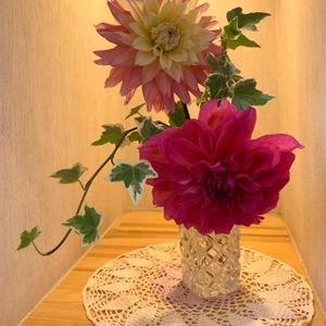こんばんは🌠 会社の一角シリーズ ダリア🙋🏻♀️ 元気に庭で咲いてます♪ 良いお花ですねー🌸🌼✂️ ヘデラは、ずっと持ちます! その内 根が生えてくるし 良い仕事してくれます (笑) 今夜もリラックスして 明日に備えましょう♪