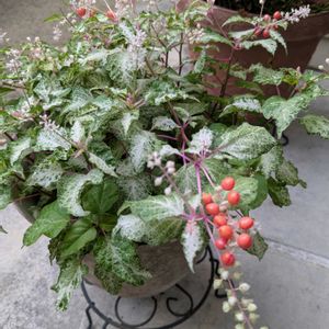 ジュズサンゴの実が赤くなりました❤️斑入りなので可愛いです💕 毎年こぼれ種で育てます。