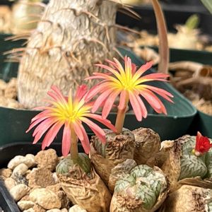 ちいさなオベサがポコポコ 鉢いっぱいになってきた😊 ④は赤い小さな花咲いた!