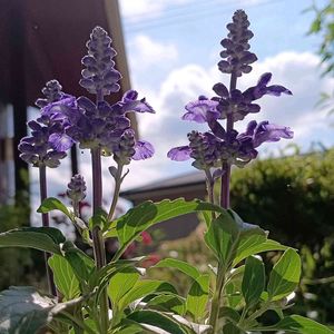 こんにちは☀ ブルーサルビア 1つは鉢植え 1つは地植えにしています。 涼しげな色合いでいいですね~ 買って良かったです✨