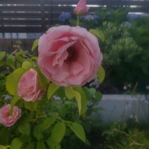 【薔薇】ビエドゥー 淡いピンクの薔薇 樹勢が強く、葉が肥料不足の色してますが花が沢山咲きます💦 マグネシウムか窒素不足かな? 写真ぐらいの咲き方ぐらいが可愛いかな✨