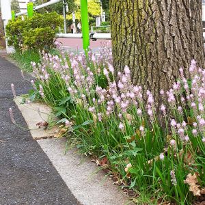 ツルボ 蔓穂 キジカクシ科ツルボ属の多年草 在来種 日本全土に分布 日当たりが良く背の高い草のない所を好んで生える 花期は 晩夏〜初秋 仕事の道中 街路樹の足元が ピンク色で囲まれているのが遠くから目に付いたので 寄って自転車止めてみました あー!ツルボちゃん! モミジバフウの並木道、なぜかこの 1箇所だけツルボが ワサワサ 群生してました。 不思議ねー ものの数分ですが ウキウキ るんるんのチャージ完了 撮影 2025 9/30 スマホ 道端 街路樹の足元