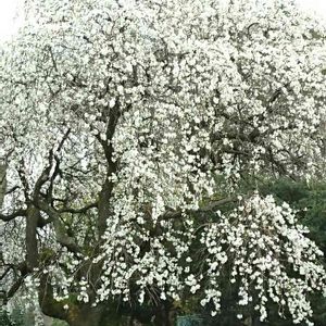 こんにちは👋😃☁ 鈍よりとして小雨が降る中、雪のように綺麗な白い垂れ花ももさんが咲いていました😍💞💞 青空ではないのにひときわ目立っていました😍
