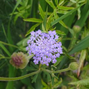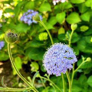 ブルーレースフラワーが、咲きました。 園芸店のPOPに、惹かれました🎨🪄 『ブルーのレースが広がります。 宿根草です。 溢れ種でも増えます』 色合いは、スカビオサに似ていますが、 花は大きく、直径8センチくらい。 今年は一株だけですが、 来年はオルレアと、 場所の取り争いになるかもね。