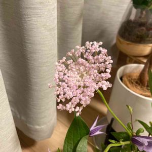 おはようございます✋😊☔ 昨日お迎えした子です🤗💓 茎と葉っぱ🌱は菊サンにそっくりですが、お花は5~6cmの小さなお花です😊 背丈は25~30cmでそんなに高くありません😊 そばにいた店員さんに聞いても分からず、検索🔎でしらべても特定出来なくて😥 「🏷名前教えて」でしたが、 色々検索🔍↲して、 ブルーレースフラワーサンと言う事が分かりました✌️😊